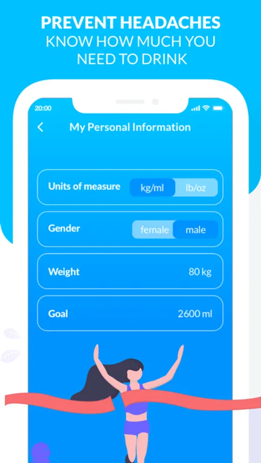 The app sets daily goals according to your weight, sleeping time, sports, and gender. Plus you can connect to Health App and let Crystal calculate your daily goal according to your step counts and distance.