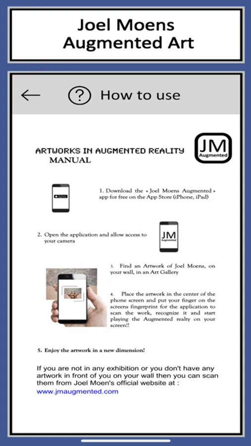 JM Augmented is an appliction to see Joel Moens artwork with augmented reality.