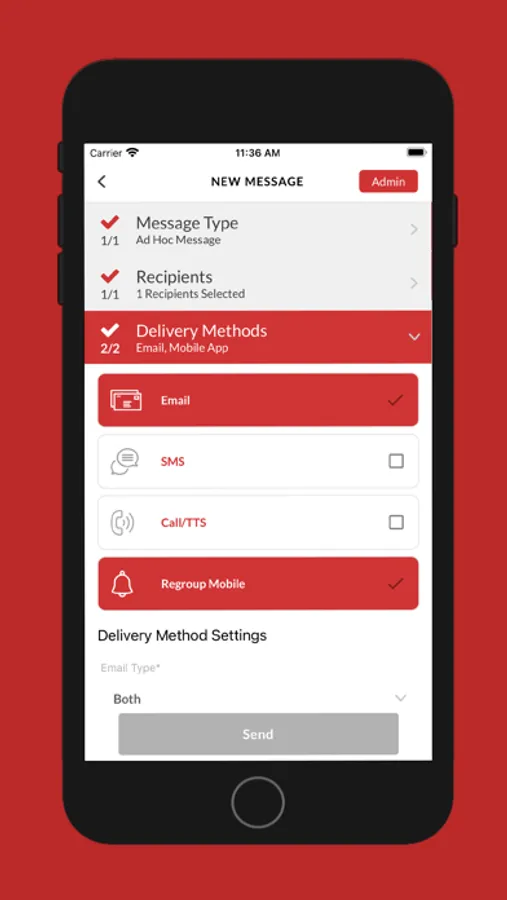 - Two-Way Messaging: Replies from recipients can be seen in real-time in the app so admins have immediate access to information and can take action fast.