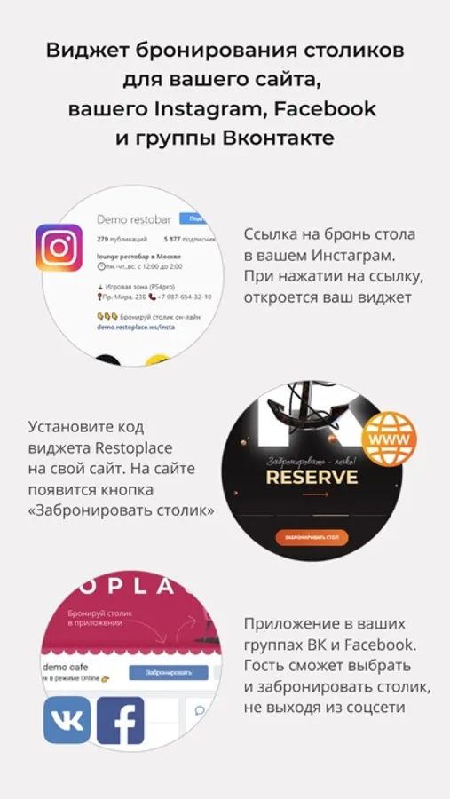 – Виджет бронирования для сайта, Инстаграм, Вконтакте, Facebook