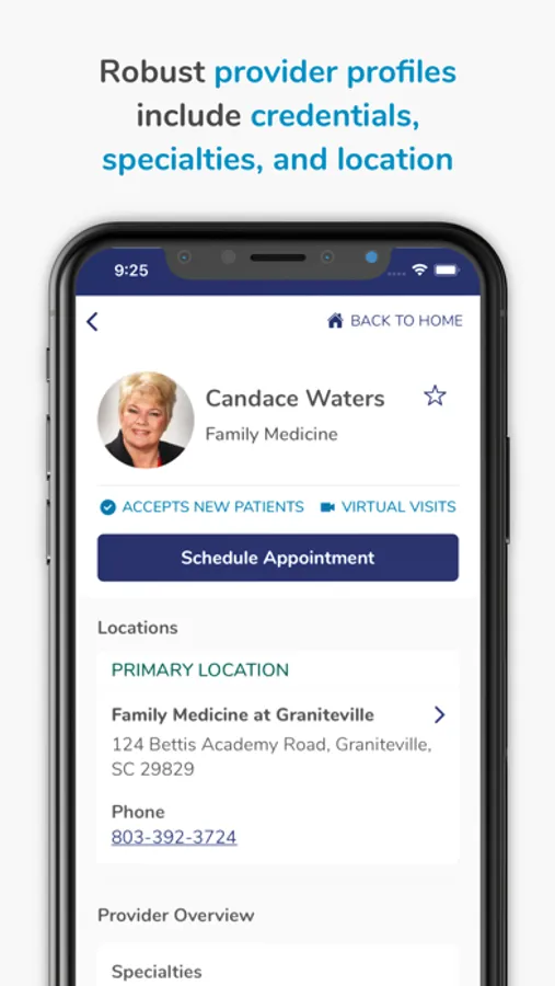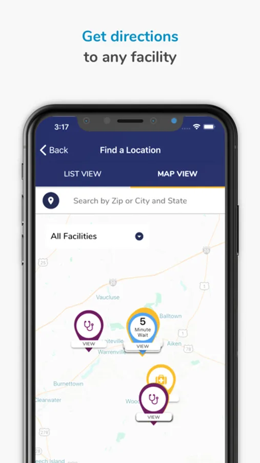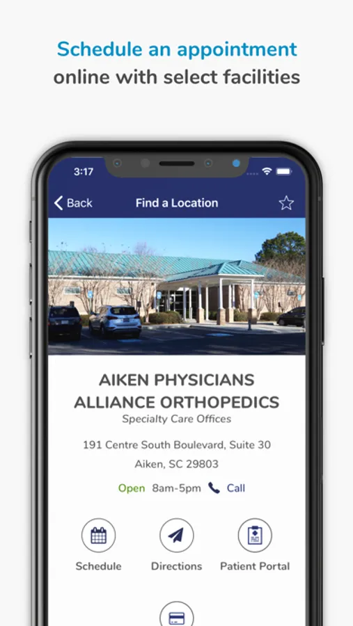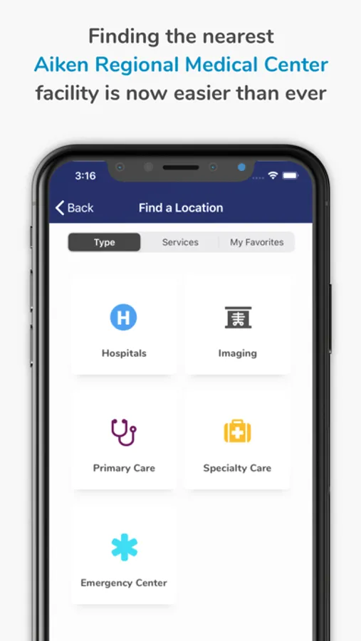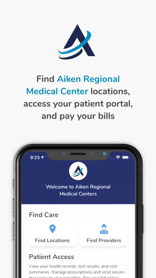 The Aiken Regional app gives you the location and directions to the nearest Aiken Regional Medical Center facilities based on the type of care you need. It also allows you to find a provider, schedule an appointment, view your health records, pay bills, and find nearby amenities like restaurants, gift shops and florists.