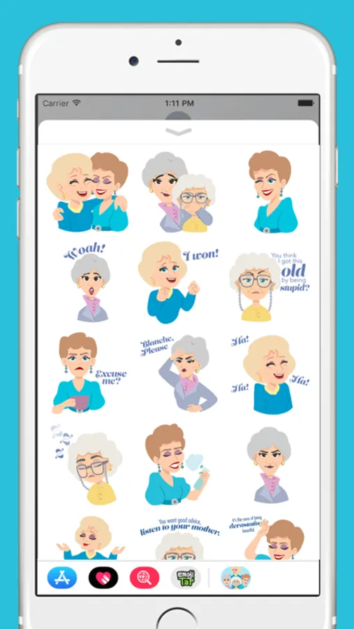 The Girls are back in this sassy new sticker pack. Sophia, Blanche, Rose, and Dorothy will provide you with a golden retort for any occasion. Pack includes 24 animated stickers.