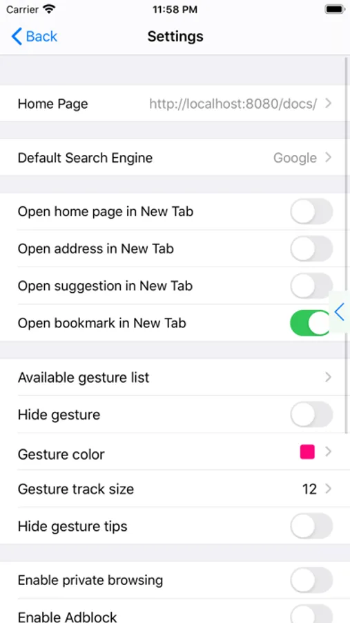 Beside these, you can also use system provided - single finger gestures to go forward or backward on current page, and you can customize gesture actions;