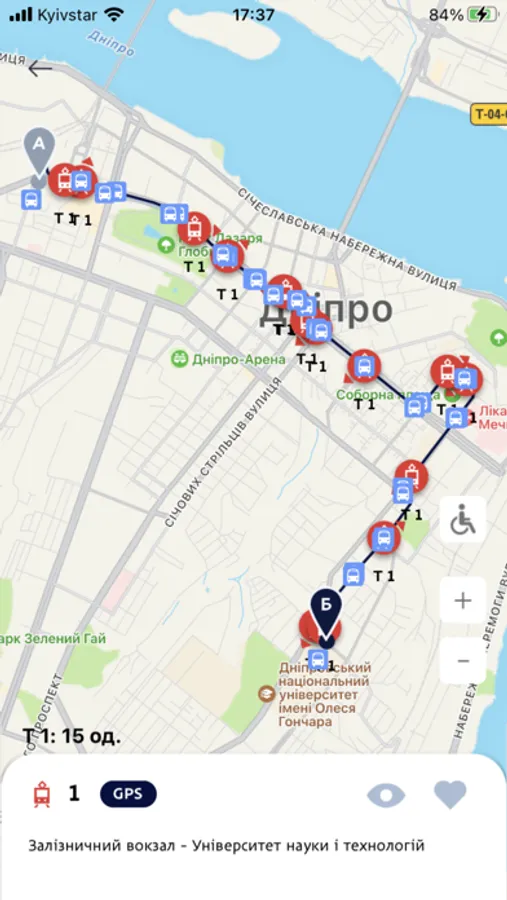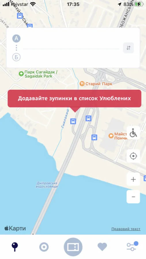 • Заносити будь-які обрані маршрути та зупинки в обрані («улюблені»);