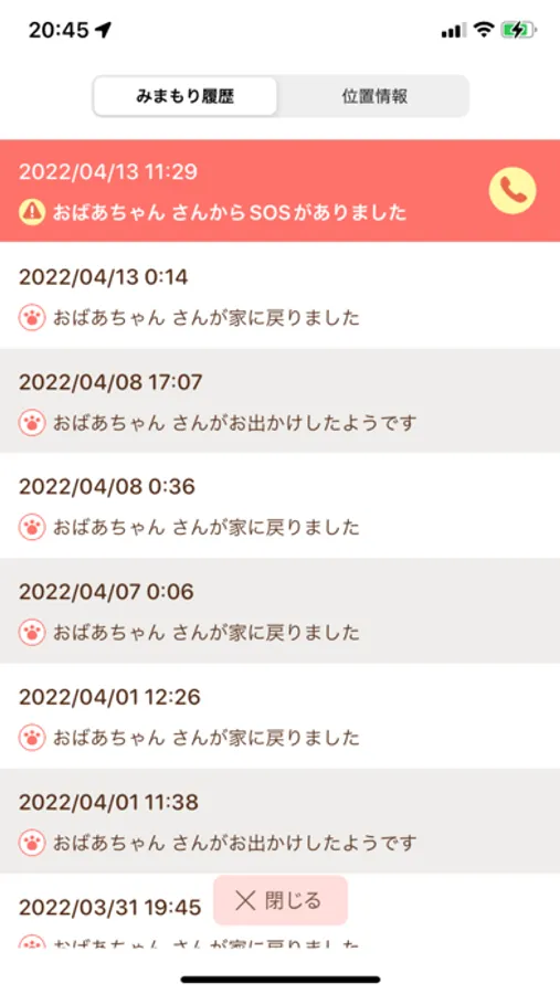 そのSOSをEメールで受信し、このアプリで状況を確認できます。