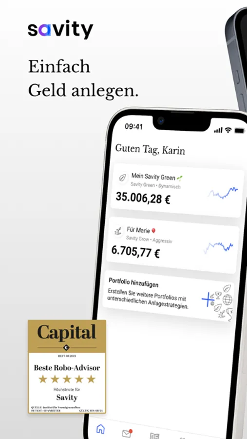 Vertrauen Sie auf Österreichs besten Robo-Advisor: Savity wurde im Capital-Test 08/2023 mit fünf Sternen und der Höchstnote ausgezeichnet – und ist damit zum vierten Jahr in Folge als bester österreichischer Anbieter aus dem Test hervorgegangen.