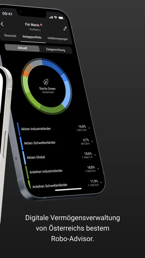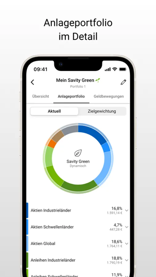 • Aktuelles Anlageportfolio, Zielgewichtung und Detailinformationen zu den Positionen einsehen