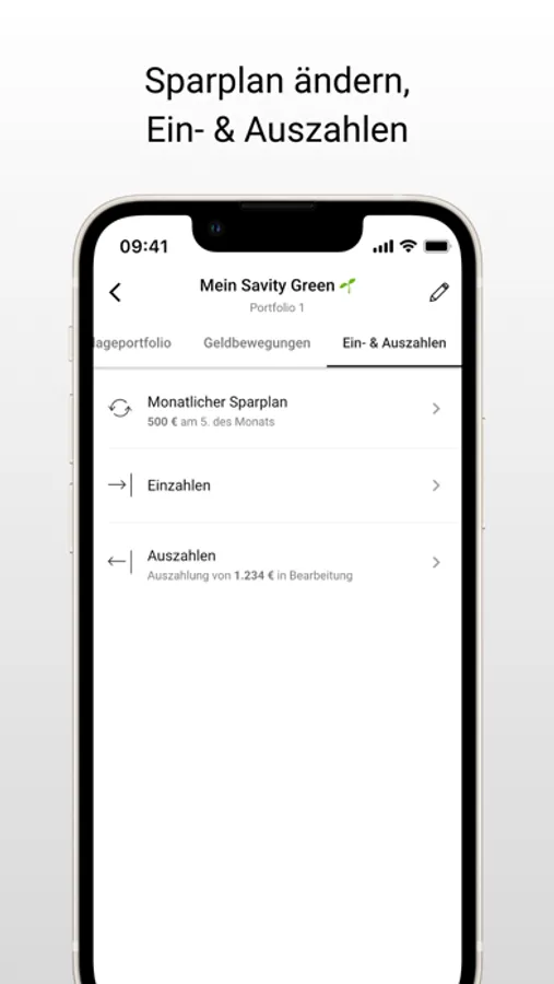 Mit der Savity-App behalten Sie Ihre Geldanlage immer und überall im Blick. Ein- und Auszahlungen oder Änderungen des Sparplans sind jederzeit flexibel möglich.