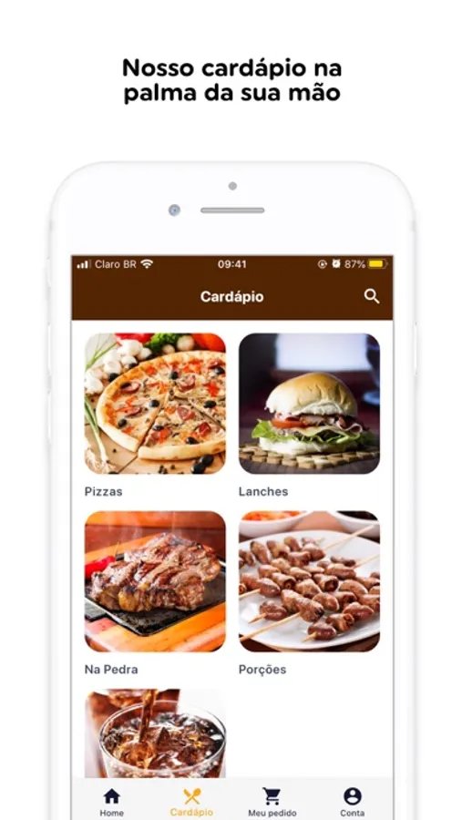 No app, você encontra de forma rápida o cardápio completo e ainda pode utilizar a ferramenta de busca para localizar diretamente os produtos que você deseja.