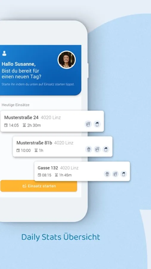 Das Konzept des Stechuhr-Prinzips wird somit direkt auf den Einsatzort gebracht. Mitarbeiter müssen zu Dienstbeginn nicht in die Zentrale, um den Arbeitsbeginn zu starten.