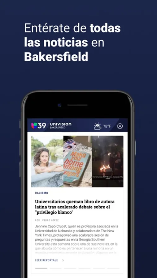 Univision 39 Bakersfield es el portal de noticias para la comunidad hispana en EE.UU. Encuentra noticias de inmigración, política, resultados de la lotería, información del tiempo, economía, negocios, finanzas, educación, salud, medio ambiente, tormentas tropicales, tornados, huracanes, Estados Unidos, deportaciones, entre otros. Enterarte sobre las notas de opinión y mucho más.