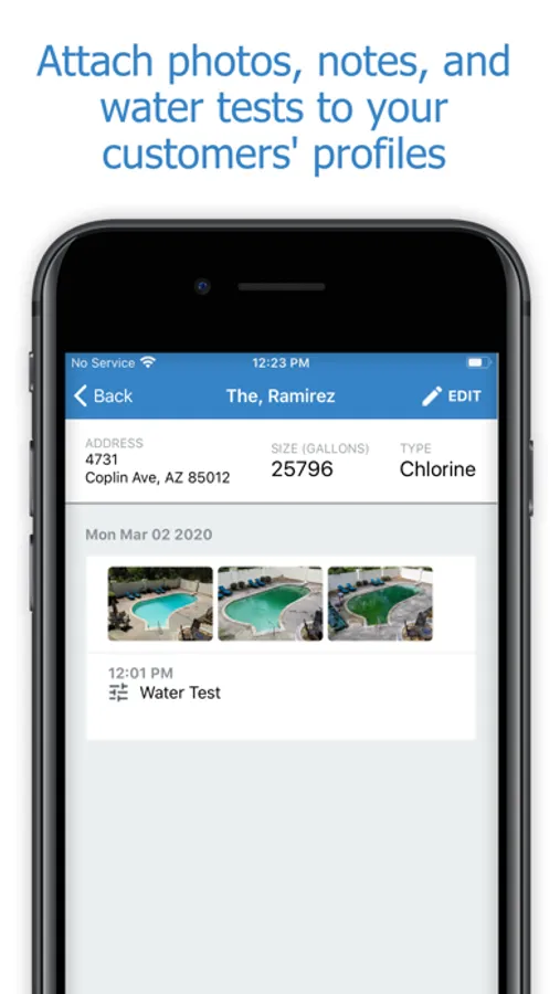 - The ability for Pool Professionals to send photos of their customers’ pools after each visit along with a report of what has been done onsite