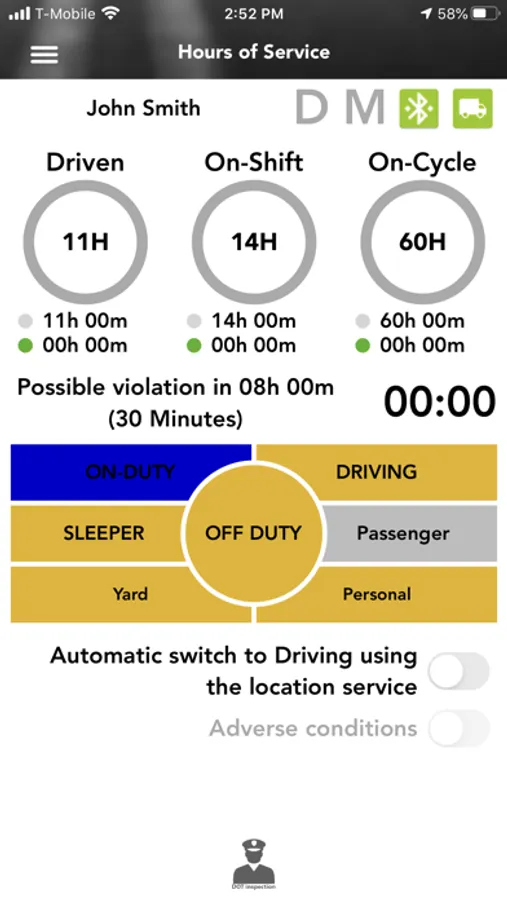 -Mobile device permits duty status changes only when the vehicle is at rest