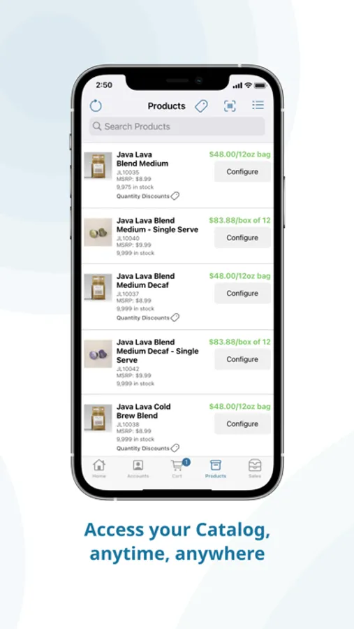 Check inventory in real-time and build orders with Zoey’s mobile app’s built-in barcode scanning capability. Make it easy to create orders when the products are in hand or from a barcode list that you make available to your sales team.