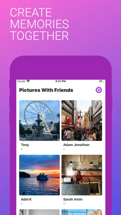 Picture Together camera is on as soon as you open the app. Select from your list of friends who you want to Picture with! As soon as you snap your camera, your friends receive the photos and videos your take.