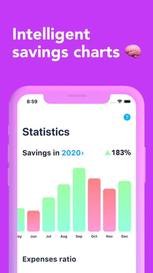 Basic statistics show you the ratio of expenses by month and category. At any time, you can compare what you spend more money on, and see the dynamics of expenses for each category, decide what you can save on, or, conversely, pamper yourself a little.