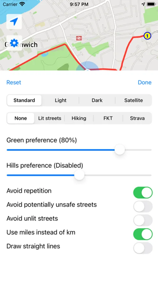* Choose whether you'd prefer routes that involve nature, well-lit streets or a lack of hills.