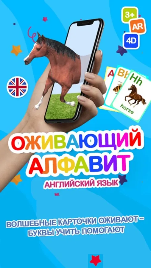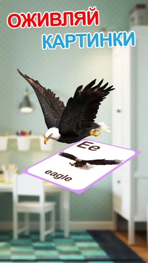Приложение переносит виртуальные объекты прямиком на карточки, создавая максимально интерактивную интересную атмосферу обучения, которая вовлекает ребенка изучать язык. Покажите ребенку, что английский это интересно: