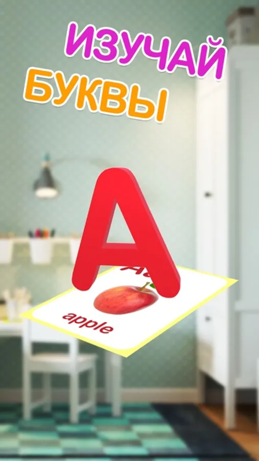 2. Что бы использовать AR функционал приложения запустите приложение и наведите центр камеры на любую карточку Оживающего Алфавита.