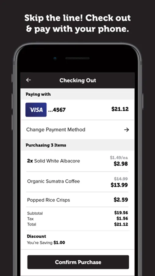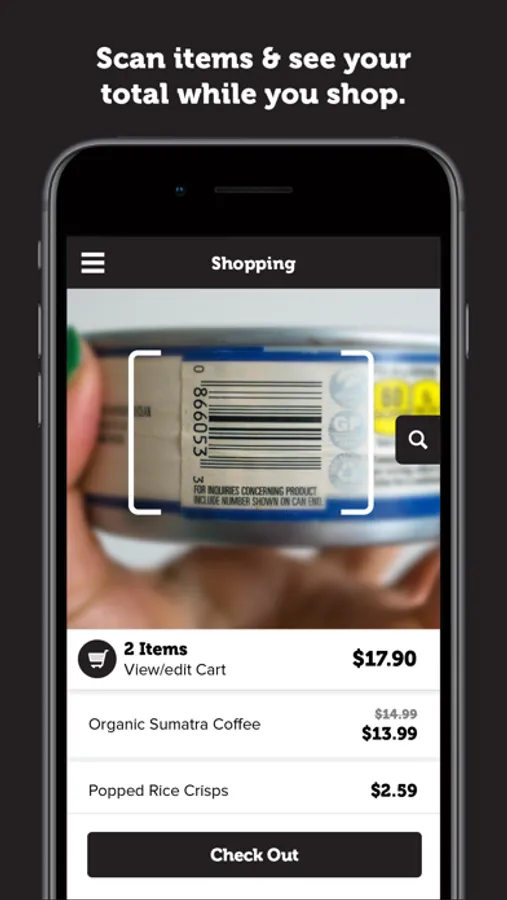 - Scan merchandise with your phone and checkout instantly without waiting in line