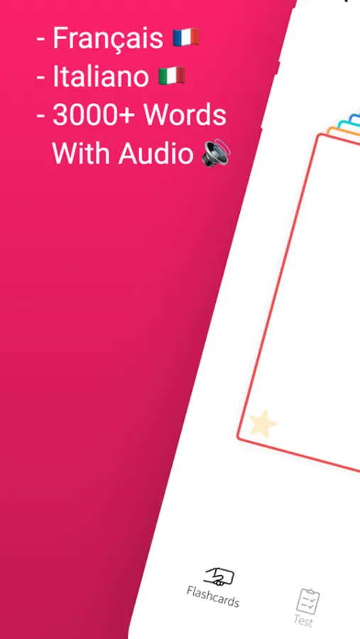 Expand your language skills with this app, the ultimate French-Italian vocabulary learning app. Unlock the power of 3000 commonly used words through an immersive learning experience designed to boost your language proficiency. Whether you're a beginner or an advanced learner, our app offers three dynamic features to accelerate your progress: Flashcards, Word Tests, and the exciting Match Game. Start your language journey today and become a fluent communicator in both French and Italian!"