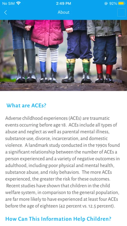 Take the quiz to see you ACEs Score. Adverse childhood experiences (ACEs) are traumatic events occurring before age 18. ACEs include all types of abuse and neglect as well as parental mental illness, substance use, divorce, incarceration, and domestic violence. A landmark study in the 1990s found a significant relationship between the number of ACEs a person experienced and a variety of negative outcomes in adulthood, including poor physical and mental health, substance abuse, and risky behaviors.