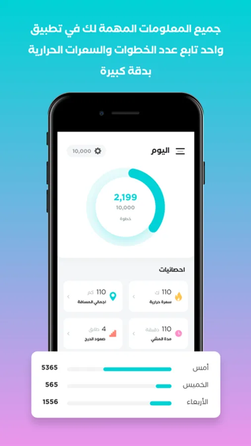 - حساب عدد الخطوات للايام السابقة وعرضها على شكل رسوم بيانية