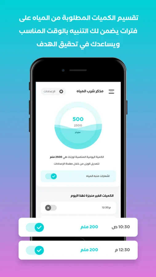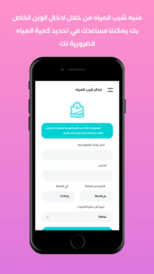 - تقسيم الفترات الزمنيه حسب الوزن المدخل للمساعدة في تنظيم شرب المياه وتجنب الكثير من الامراض والمشاكل الصحية.