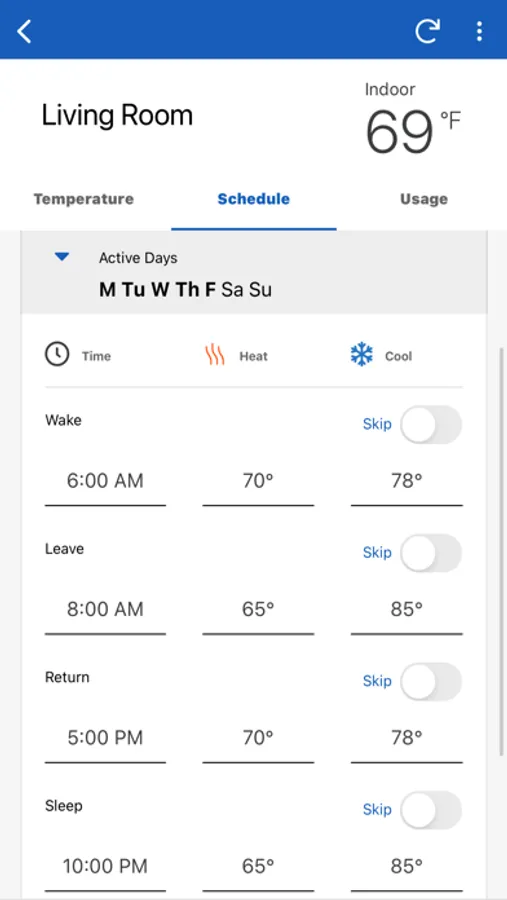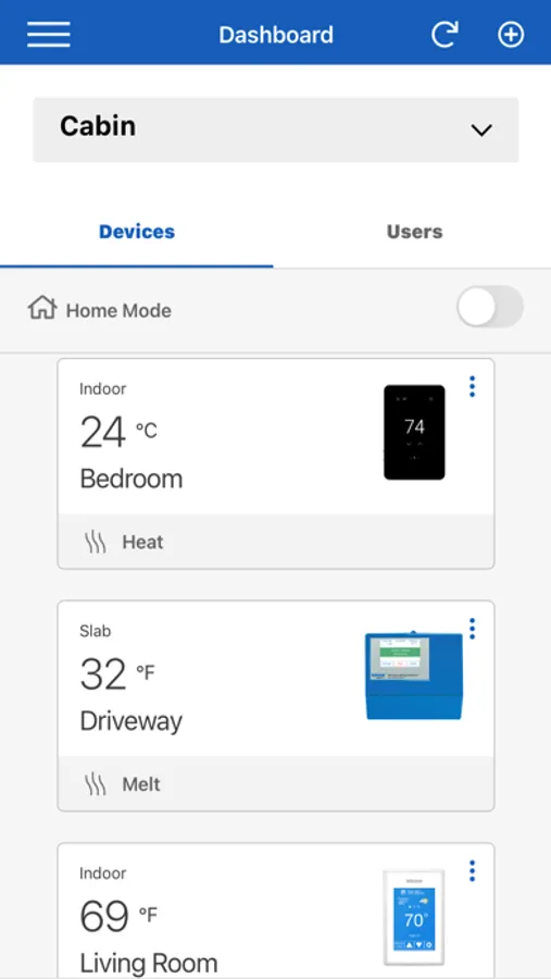 - Change thermostat mode, heat and cooling setpoints, fan, relative humidity and floor heating setpoints