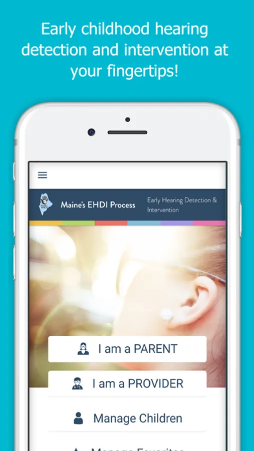 Maine's Early Hearing Detection and Intervention App is step-by-step guide to help providers and parents navigate through Maine's newborn hearing screening process. Also included are resources to help obtain parent-to-parent support for families, risk factor guidelines, lists of audiology facilities and information about those professionals involved in the newborn hearing screening process through diagnosis and into early intervention services. Resources are also included for audiologists and early interventionists.