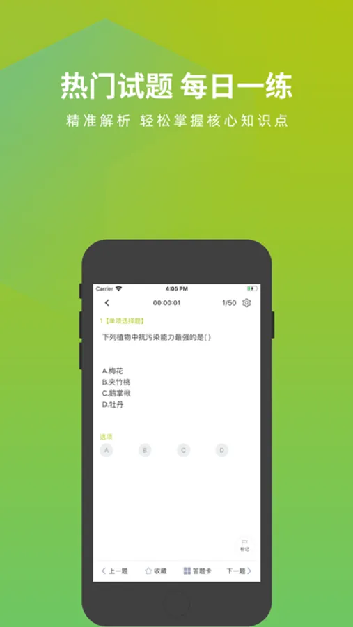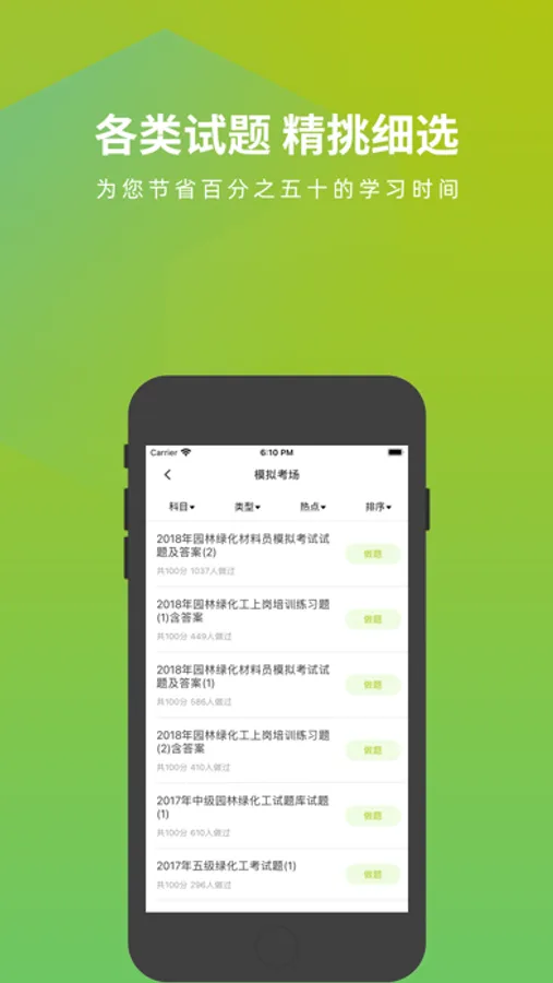 园林绿化工题库APP是一个针对园林绿化工考试的题库,涵盖了该考试的热点、难点和常考点的考试模拟题库,是您学习和拿高分的好帮手。