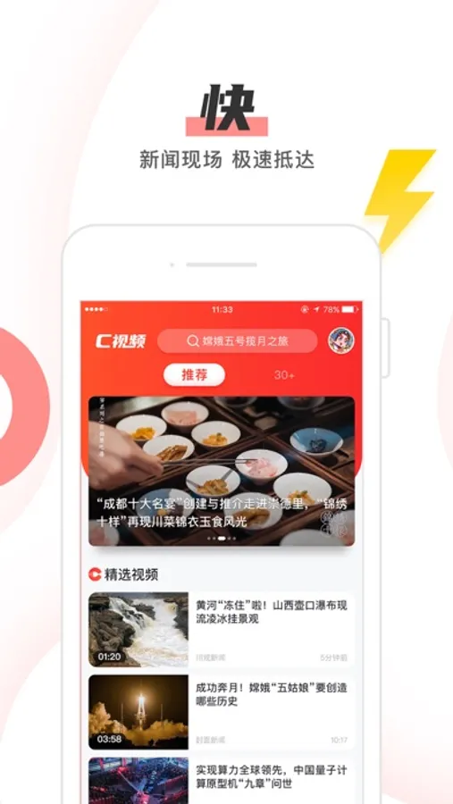 C视频是一款定位快速阅览的微视频新闻客户端。以快速、精选、深度、沉浸为产品定位。以短小精悍的短视频为主,包含国内国际新闻的核心现场,以简洁的产品架构,为用户提供多样化、多维度的优质短视频新闻内容。