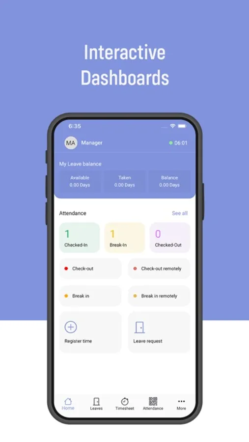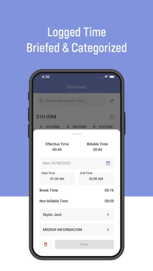 - Worktime registration per project, stage, and task (Billable, Unbillable, and breaks)