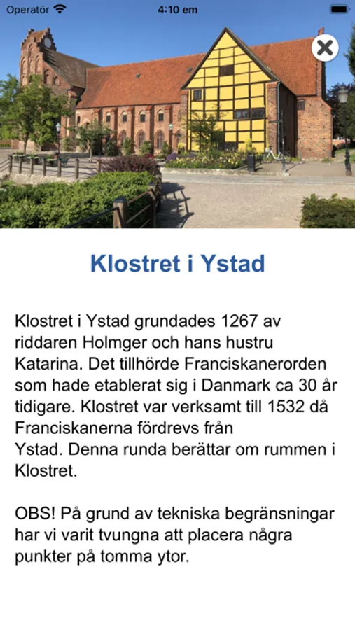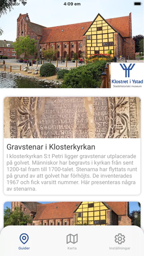 Här erbjuder vi historiska rundor knutna till Ystads historia eller våra utställningar. Klostret i Ystad grundades 1267 av riddaren Holmger och hans hustru Katarina. Franciskanerbröder levde här under medeltiden. Det har sedan varit hospital, kronobränneri och sädesmagasin. Klostret har varit ett museum sen 1912.