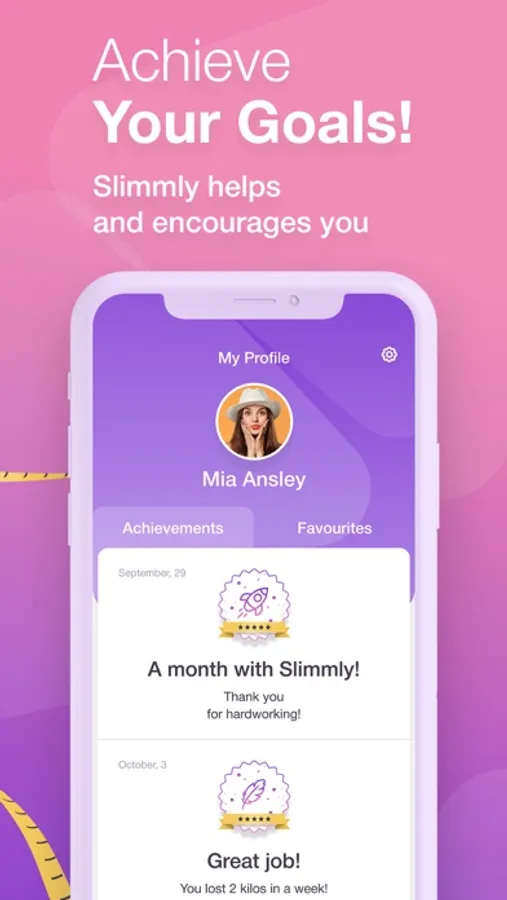 Slimmly encourages you with achievements and shows your weekly and monthly progress. Choose tips you like the most and add them to favourites. Build your own way to health!