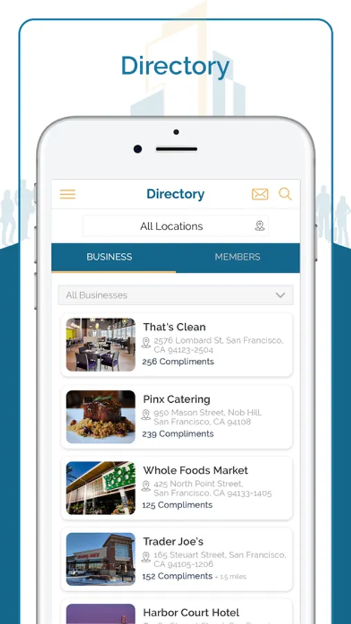 Business Directory: View, send messages and access business profiles that are part of the association.