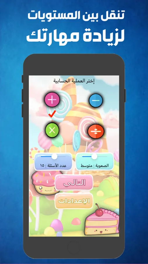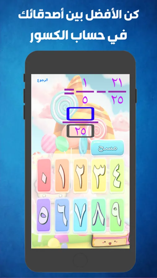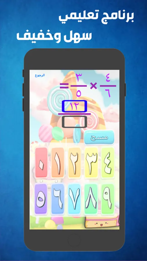 تطبيق سهل وبسيط لإختبار نفسك في عمليات الجمع والطرح والضرب وقسمة الكسور مع إمكانية عرض النتائج وإكتشاف أخطاءك