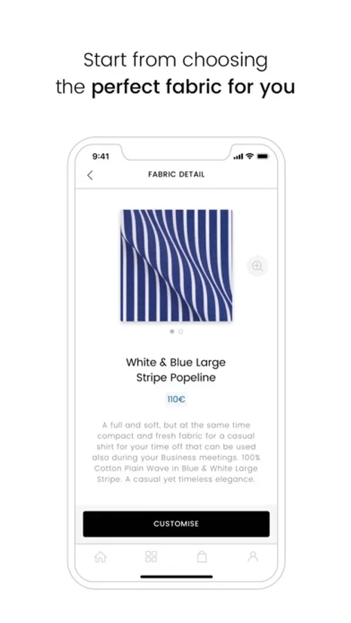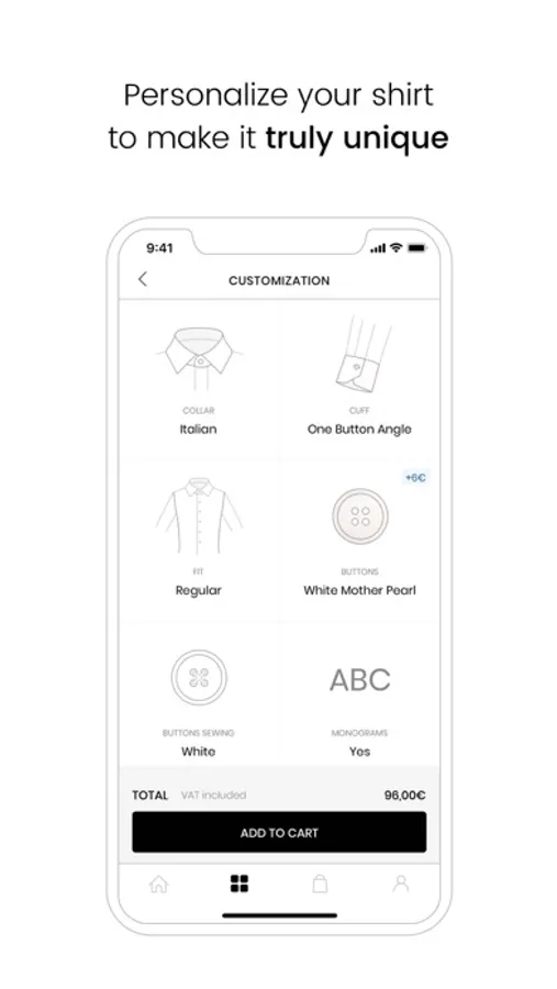Customize your shirt with just few clicks. Start from choosing the fabric you want, then look at all the details you can personalize (including collars, cuffs, monograms and buttons).