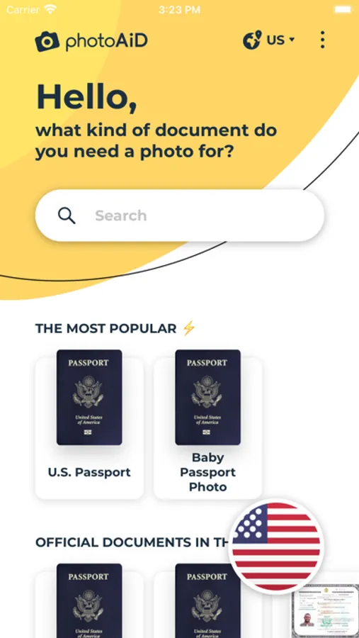 Photo AiD is an ID photo app that works like a passport photo booth - it's an advanced AI enhanced passport photo creator that automatically generates biometric passport photo template for various types of documents from the uploaded picture. No more traditional passport photo booths! Our passport photo editor will work as a US passport photo background remover leaving your passport photo white background. Our digital passport photo booth works also as a US passport photo cropper and resizer. Our passport photo maker recognizes which biometric photo size (2x2 inch, 4x6 cm, 35x45 mm, etc) you need for your document (US passport photo, China visa photo, Canada visa photo, id photos, Green Card, CV photo and other documents) and makes it ready for a print out (e.g. at Walmart, Walgreens, Rite Aid, CVS, Costco, Target or AAA). The passport photo crop tool / ID photo resizer tool will adjusts the biometric photo to the required size. Take id photo, US passport photo, China visa photo, CV photo or other photo for documents within only 3 seconds!