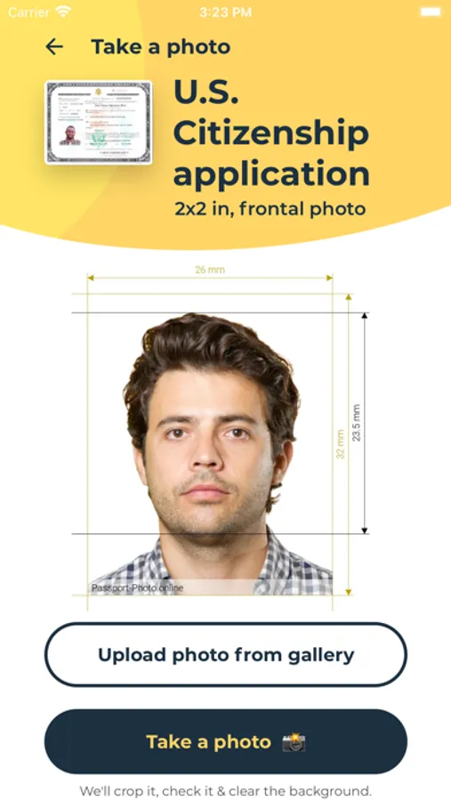 Built-in background remover clears the bg in your US passport photo and you get white background on your id photo, visa picture, passport picture or green card photo.