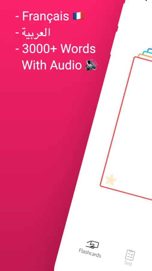 Expand your language skills with this app, the ultimate French-Arabic vocabulary learning app. Unlock the power of 3000 commonly used words through an immersive learning experience designed to boost your language proficiency. Whether you're a beginner or an advanced learner, our app offers three dynamic features to accelerate your progress: Flashcards, Word Tests, and the exciting Match Game. Start your language journey today and become a fluent communicator in both French and Arabic!"
