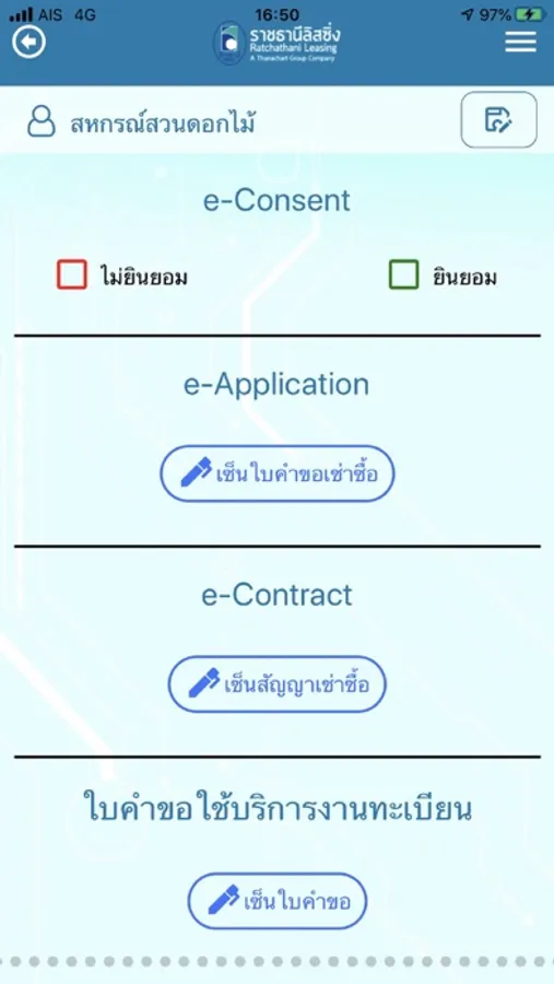 Application สำหรับการสมัครลงทะเบียนเพื่อขอสินเชื่อและขอใช้บริการเกี่ยวกับธุรกรรมต่างๆกับบริษัท ราชธานีลิสซิ่ง จำกัด (มหาชน)