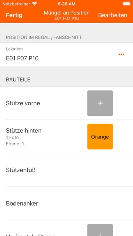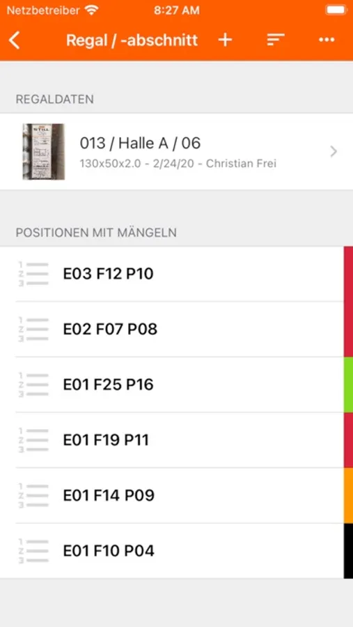 - Regaldaten inkl. benötigter Ersatzteile erfassen.
