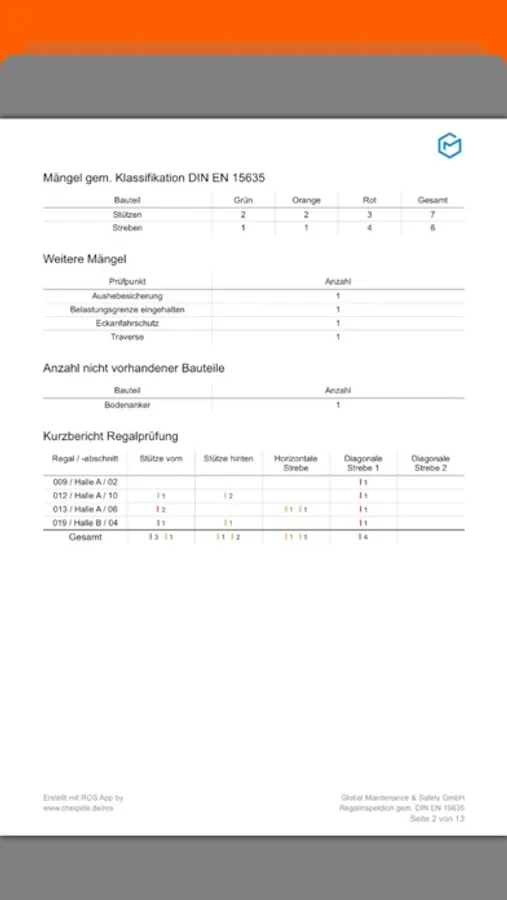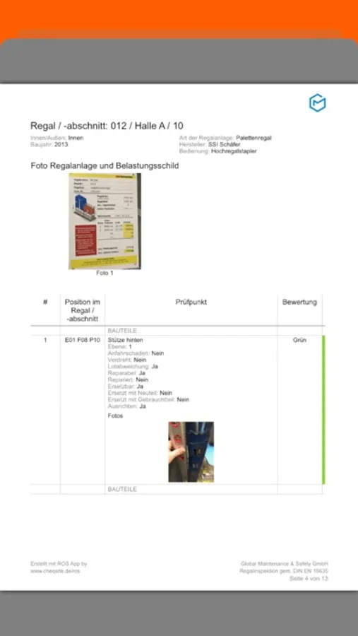 Die Regalinspektion nach DIN EN 15635 können Sie mit der ROS Regalprüfer App effektiv durchführen. Die App bildet zusätzliche Anforderungen der ROS Deutschland GmbH an die Dokumentation sowie eine potenzielle Regelreparatur bzw. Instandhaltung der Regalsysteme ab.