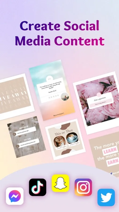 • Pick any social media size, layout, and more – including flyers, posters, and wallpapers.