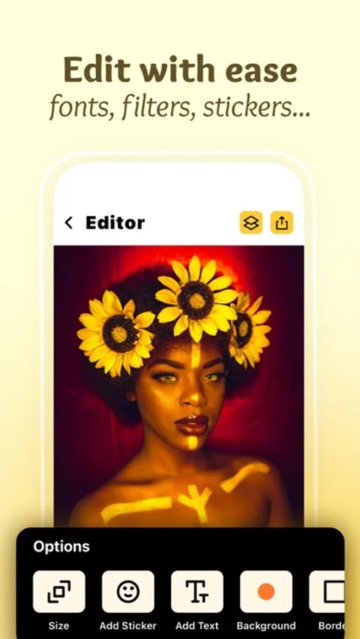 • Advanced graphic editor to edit colors, switch backgrounds, crop photos, change the layout and more.