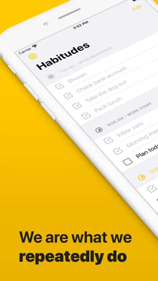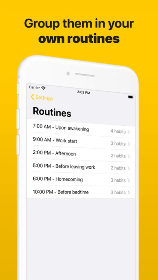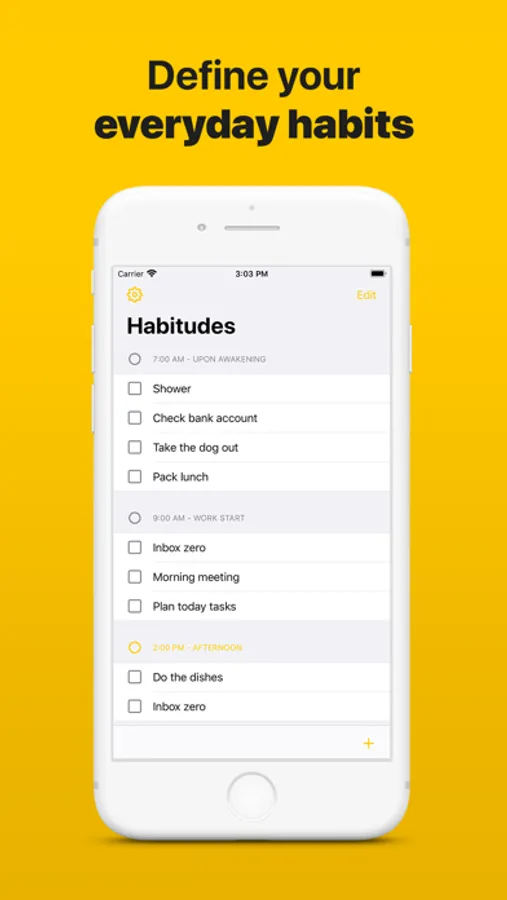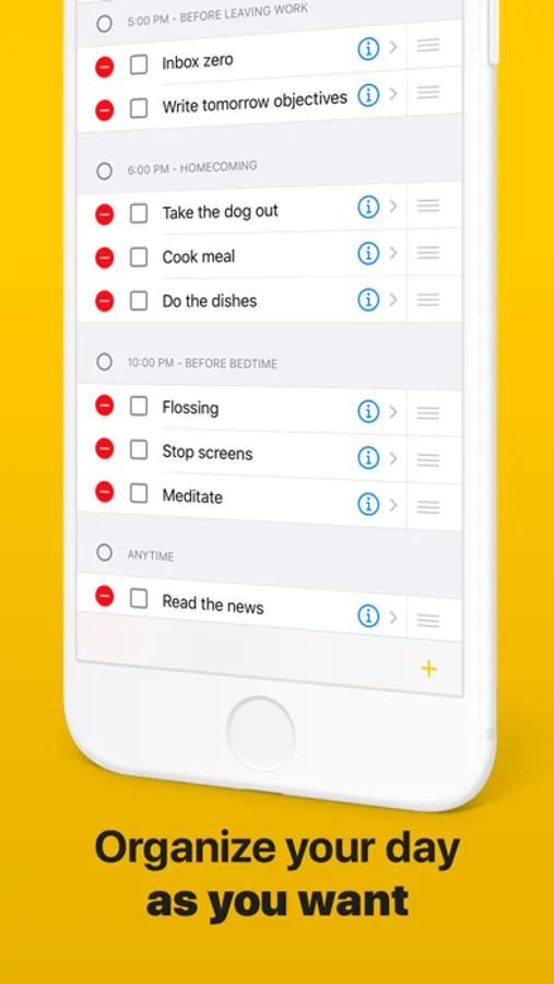 Create as much habits as you want, and group them in routines to divide your day into doable task lists.