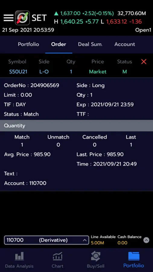 - สามารถส่งคำสั่งซื้อขาย ตรวจสอบสถานะ หรือ แก้ไขคำสั่งได้ ทั้งหลักทรัพย์และอนุพันธ์ ทุกที่ทุกเวลา