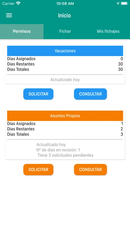 - Fichajes de entrada y salida, con geoposición y zona de fichaje.