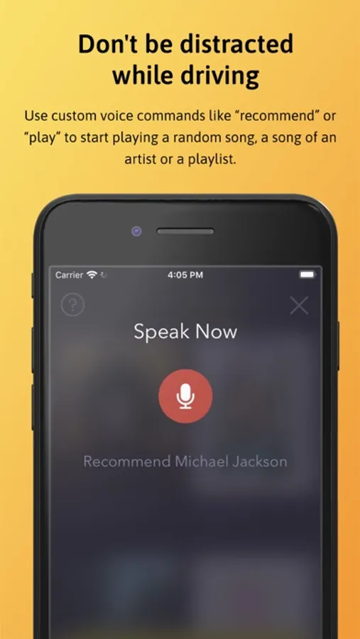 Just say the name of the song, playlist or artist that you want to play. Don't be distracted while driving.